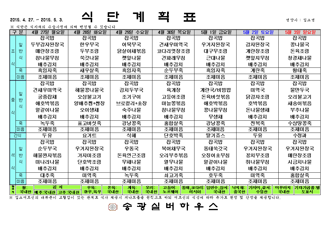 4¿ù 5ÁÖ ½Ä´Ü ÀÔ´Ï´Ù