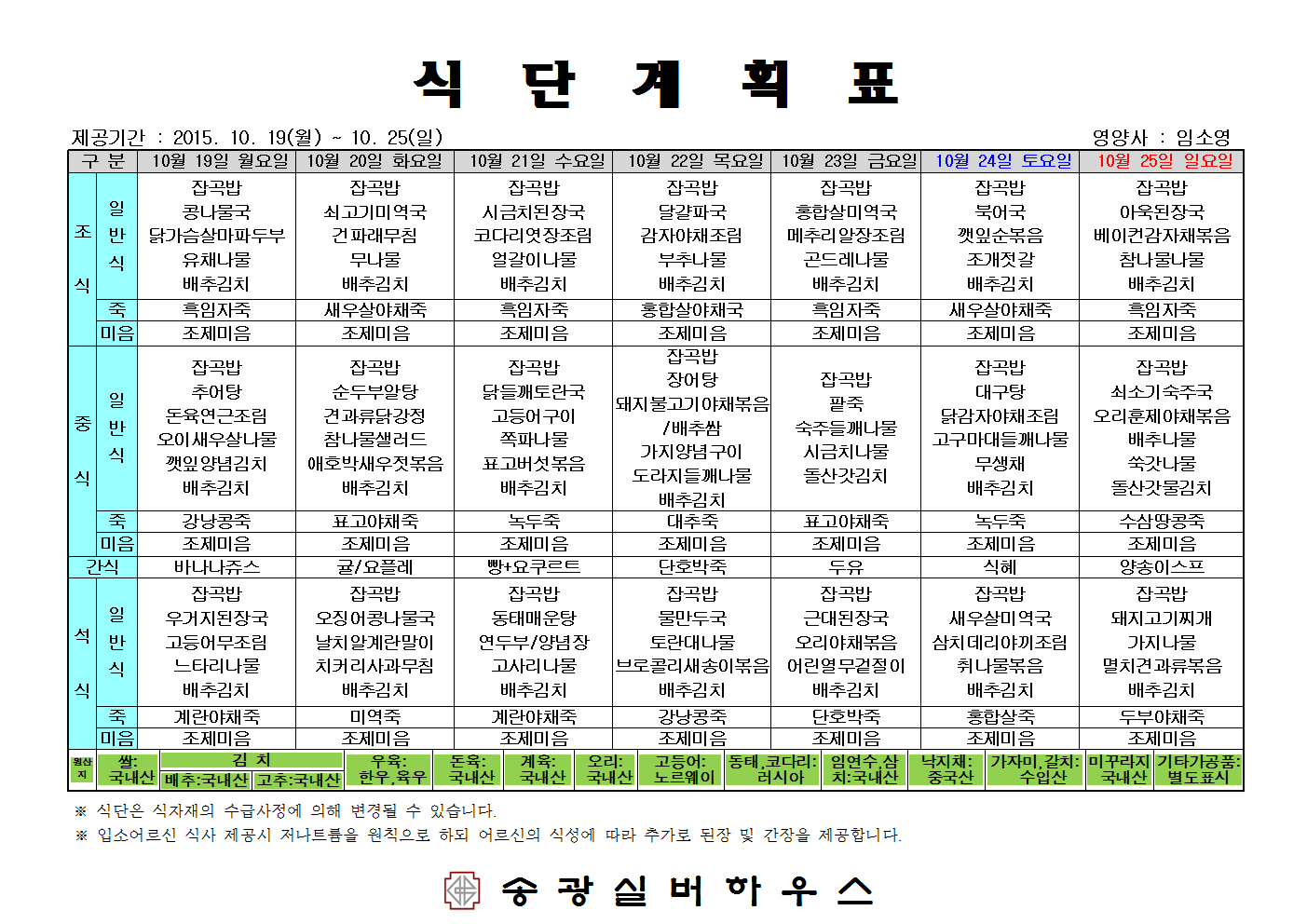 10¿ù 3ÁÖ ½Ä´Ü(10¿ù19ÀÏ~10¿ù25ÀÏ)