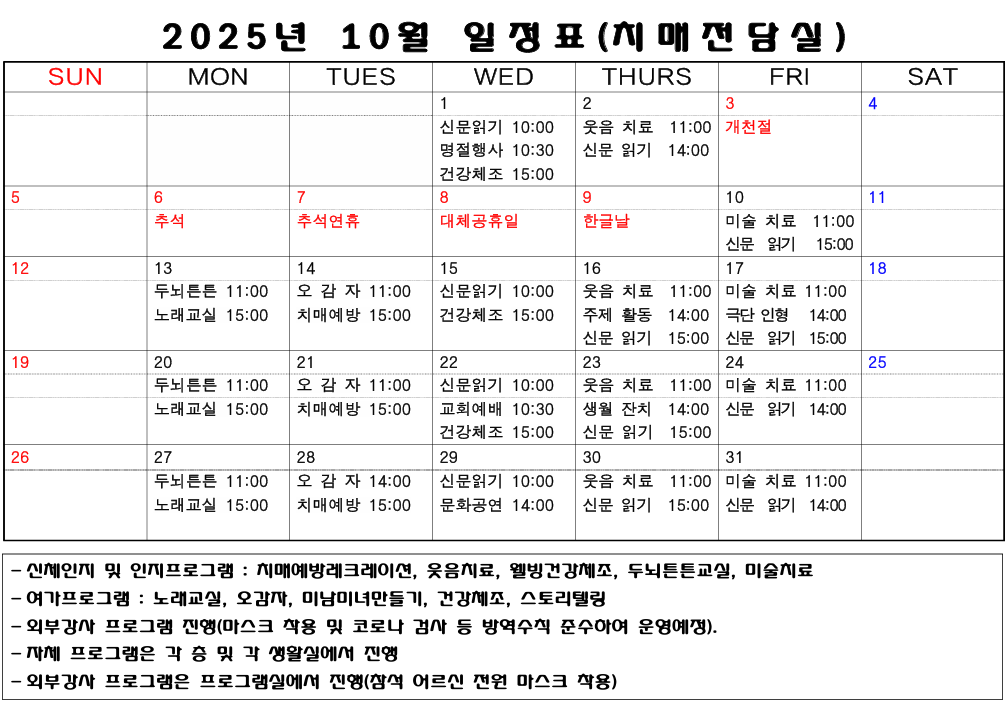 2025³â 10¿ù ÇÁ·Î±×·¥ ÀÏÁ¤Ç¥(Àü´ã½Ç)