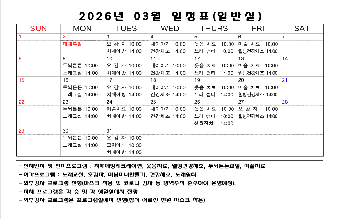 2026³â 3¿ù ÇÁ·Î±×·¥ ÀÏÁ¤Ç¥(ÀϹݽÇ)