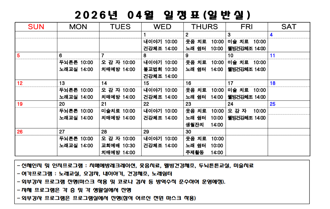 2026³â 4¿ù ÇÁ·Î±×·¥ ÀÏÁ¤Ç¥(ÀϹݽÇ)